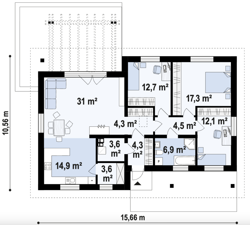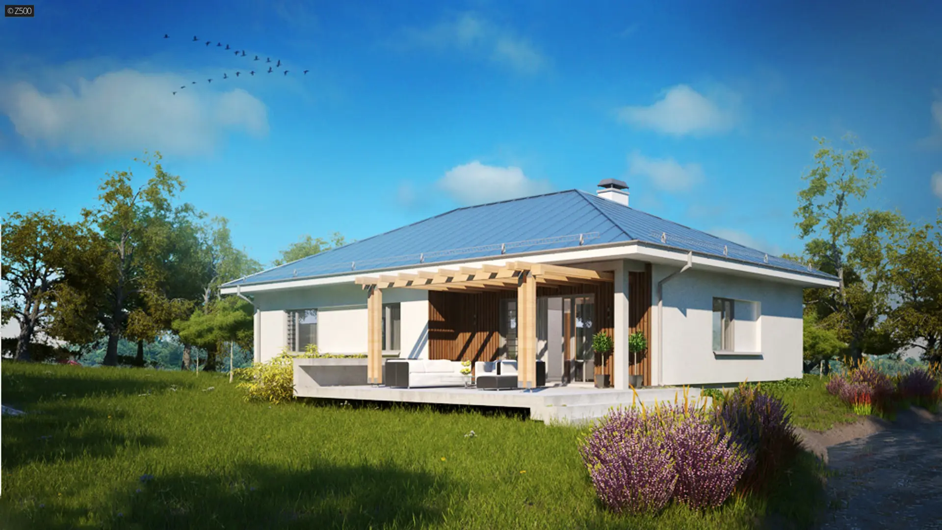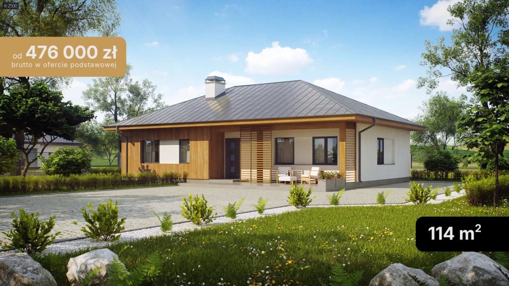 Z176 Funkcjonalny dom parterowy z 3 sypialniami i dachem kopertowym