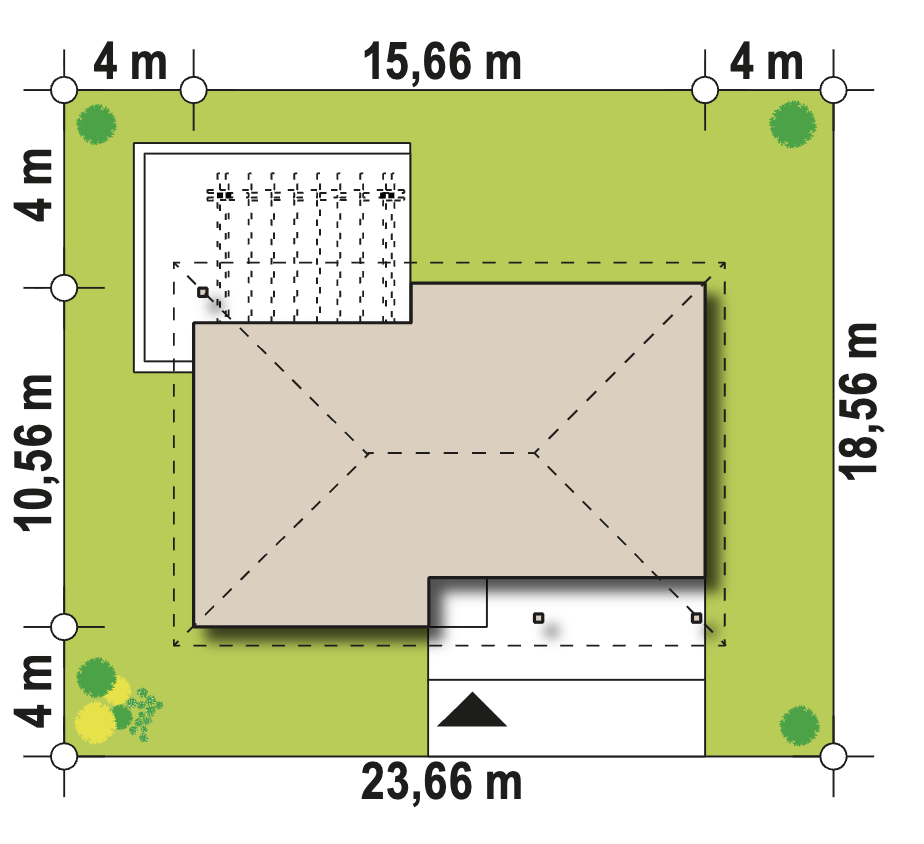 - Możliwość zaaranżowania przestrzeni strychowej w konstrukcji wiązarów dachowych,